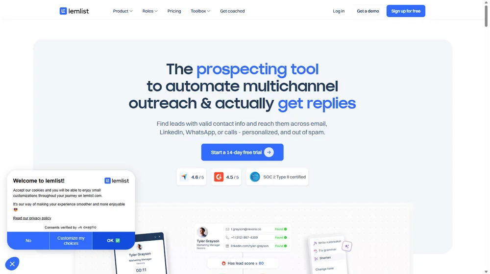 Pro Tip: To maximize outreach results, integrate lemlist with your CRM and experiment with its built-in AI templates for faster, high-reply sequences in less than 30 minutes.